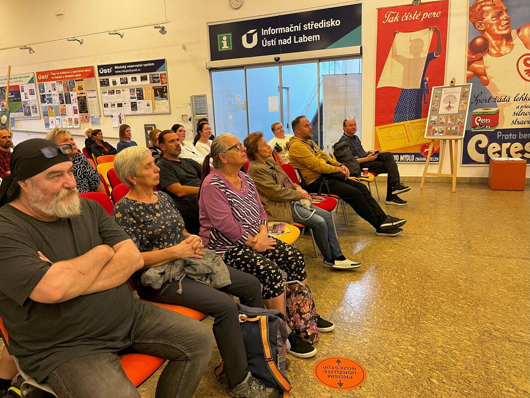 Pohodové odpoledne zakončila vlastivědná přednáška archeologa z Oblastního muzea v Ústí nad Labem Aleše Káčerika. Ten hovořil o archeologickém výzkumu, který probíhal během stavby hobbymarketu BAUHAUS v Trmicích. Publiku přiblížil nejen práci archeologů přímo na místě nálezu, ale i následnou laboratorní práci v muzeu. Diváci se dozvěděli, že na místě byly nalezeny nádoby i kosterní pozůstatky a část artefaktů si mohli rovněž prohlédnout.