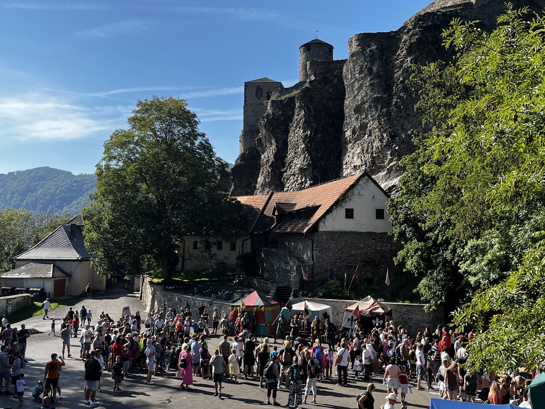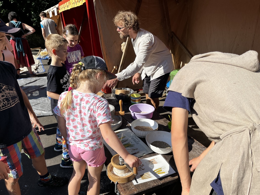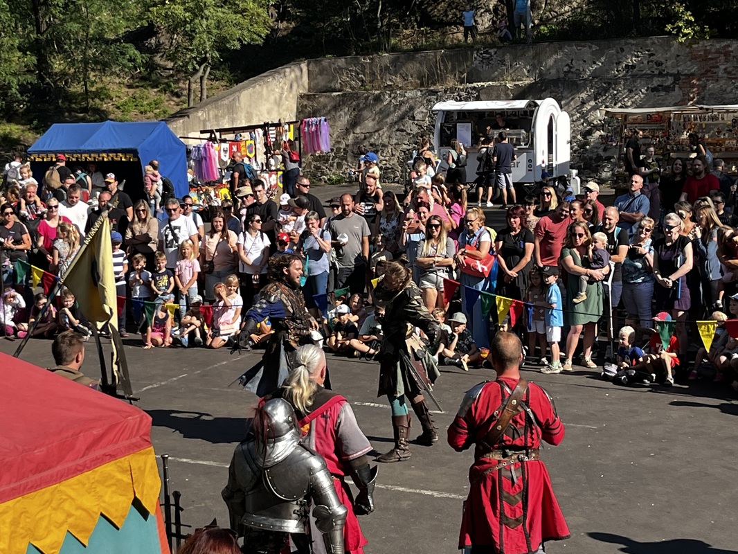 Neděle 21. 9. 2025 patřila historii a rodinné zábavě. Počasí přálo a na hradě Střekov se sešlo opravdu mnoho návštěvníků. K vidění bylo rytířské ležení s brněním a zbraněmi a napínavé rytířské souboje. Vystoupení kejklíře, který předvedl opravdu dechberoucí kousky, přihlížející více než nadchlo. Děti si na vlastní kůži vyzkoušely, jak se kdysi pekl chléb – od mlácení obilí, přes mletí mouky, hnětení těsta až po pečení placek na tálu. Program doplnily oblíbené pohádky Sváťova dividla a radost dětem udělal i skákací hrad. U stánku města si děti s nadšením vyráběly placky, které si poté odnesly jako malou památku.