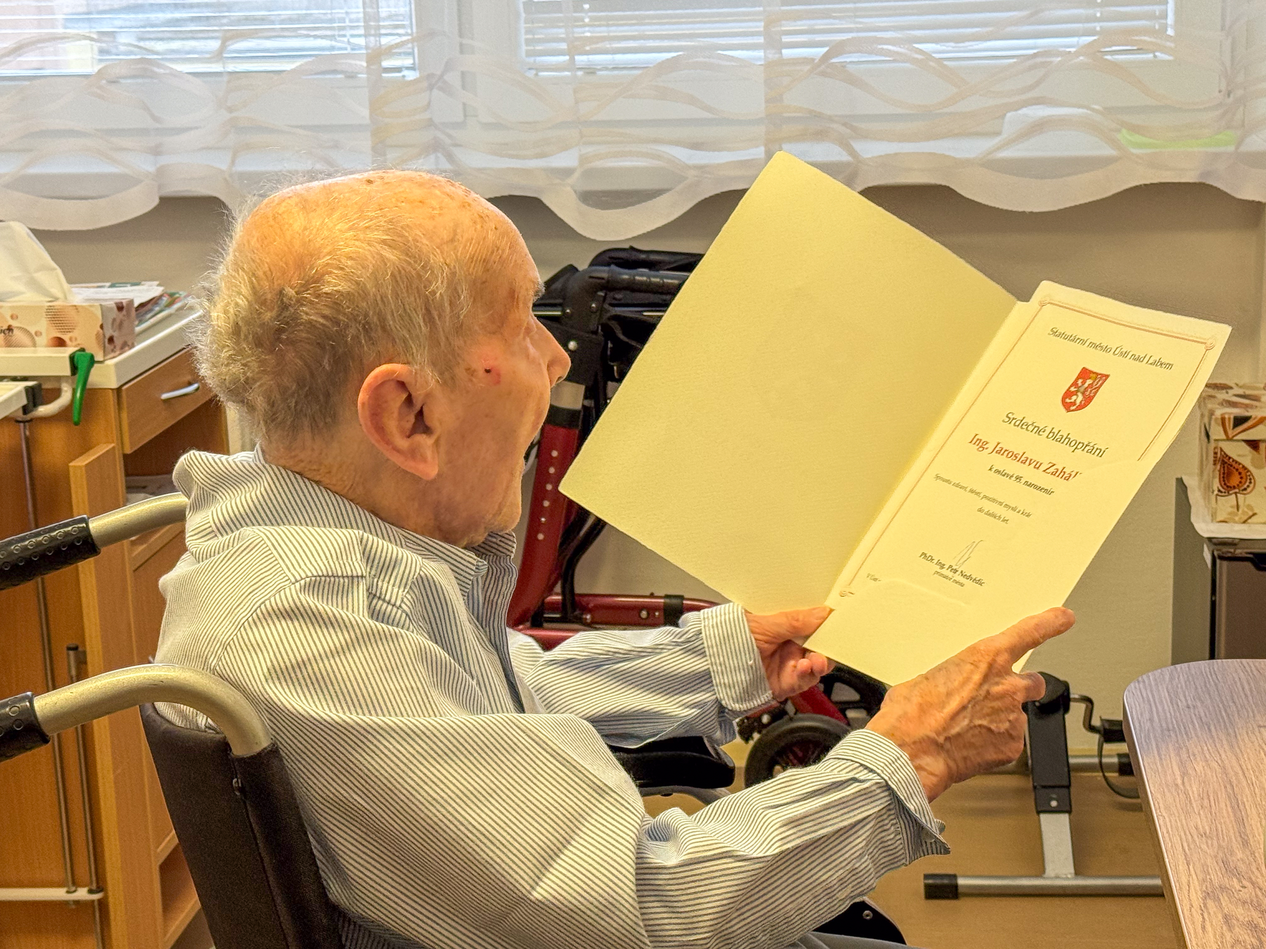 Své 90. narozeniny oslavil pan Josef Procházka. Během návštěvy vyprávěl, že pochází z Nížeboh nedaleko Roudnice nad Labem a do Ústí se přestěhoval až později. Vystudoval školu, stal se z něj strojní inženýr a projektoval zařízení pro chemický průmysl. Zavzpomínal také na mládí, kdy jako skaut chodil z centra města do míst, kde se dnes rozkládá sídliště Dobětice. Z gratulace měl velkou radost a setkání ho mile překvapilo. Poznamenal, že se mu v domově pro seniory líbí a stále ještě si zvyká na zdejší prostředí. Velmi ho těší, že mu byl přidělen pokoj s výhledem na okolní kopce a krajinu.