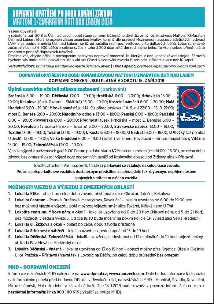Vrcholná sportovní událost s sebou přinese i omezení v dopravě ve městě (více info na www.dpmul.cz):