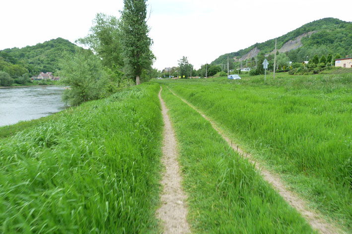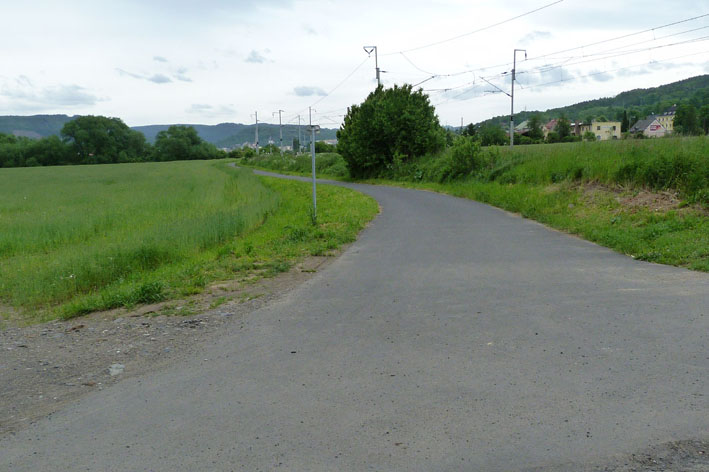 Posledních několik set metrů nezpevněného povrchu cyklostezky u Těchlovic