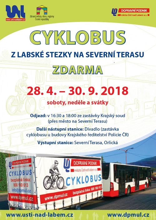 I v letošní cyklistické sezóně město Ústí nad Labem v rámci projektu "Zdravé město" zajistilo po celou cyklistickou sezónu o víkendech a svátcích provoz cyklobusu na Severní Terasu zdarma.