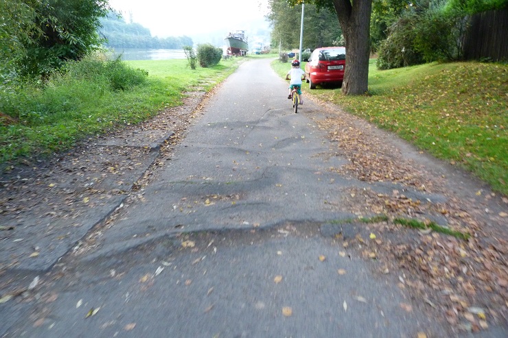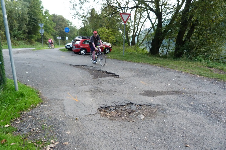 Jedná se o úseky poškozené prorůstajícími kořeny stromů a úseky s výmoly.