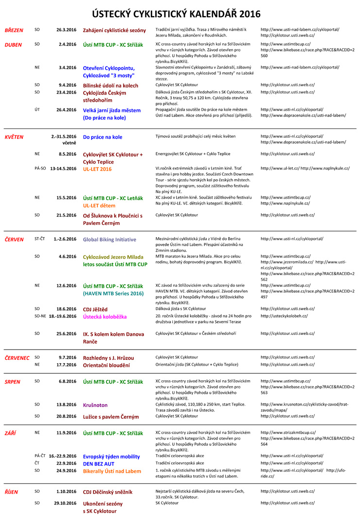 home > Volný čas > Cykloportál > Ústecký cyklistický kalendář 2016 Ústecký cyklistický kalendář 2016 ÚSTECKÝ CYKLISTICKÝ KALENDÁŘ 2016 ke stažení v PDF zde.