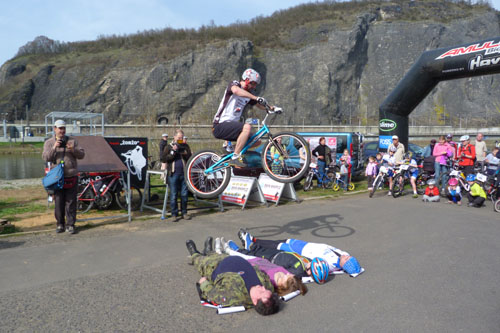 Na střekovské straně program pokračoval dechberoucí biketrialshow Tomáše Eibla.
