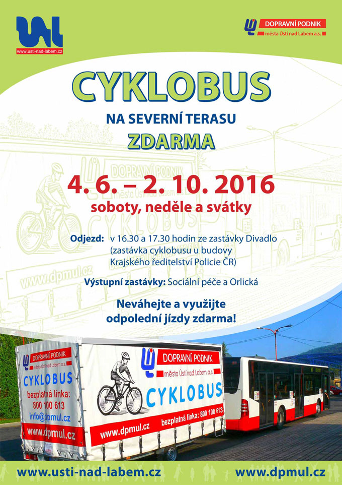 Město Ústí nad Labem v rámci projektu "Zdravé město" zajistilo po celou cyklistickou sezónu o víkendech a svátcích provoz cyklobusu na Severní Terasu zdarma.