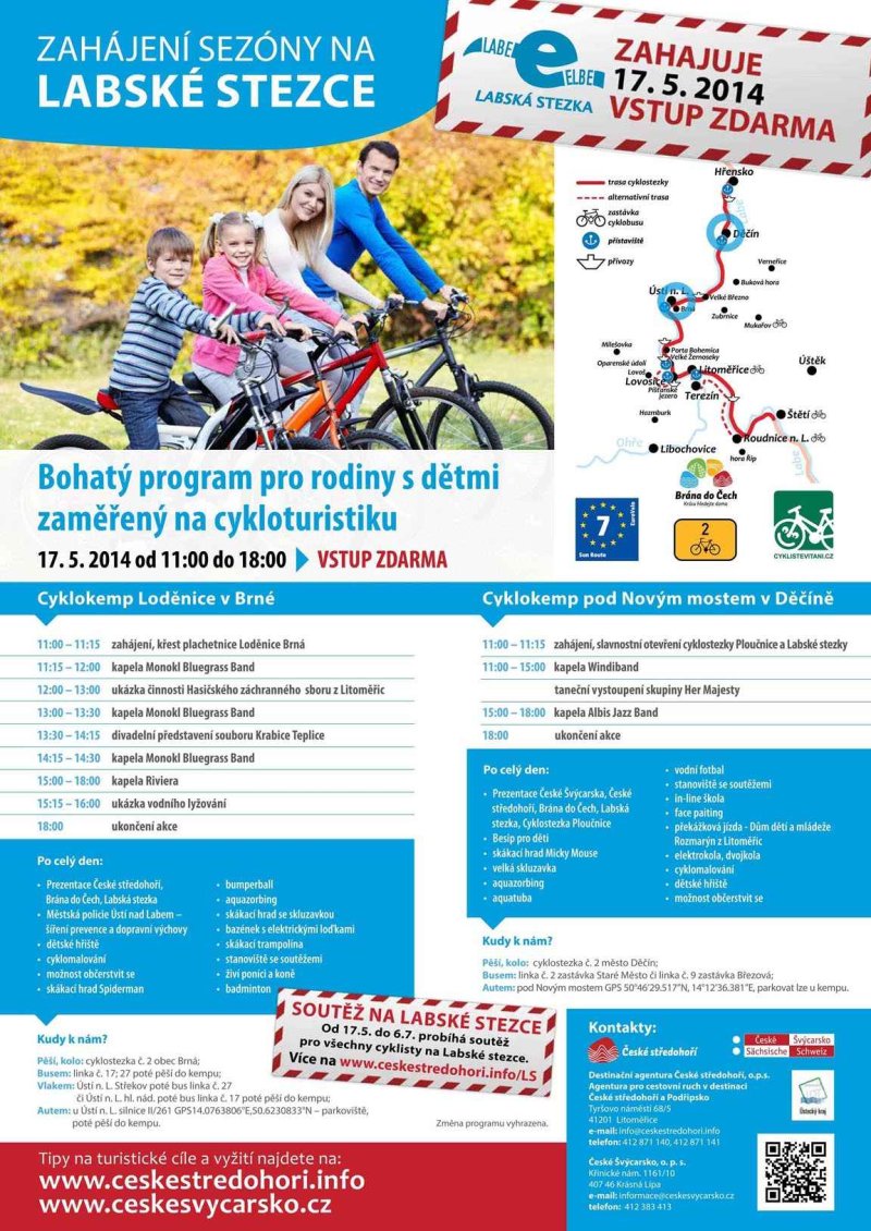 Akce bude probíhat v čase od 11:00 do 18:00 hodin. Vstupné je pro všechny zdarma. Na návštěvníky čeká program zaměřený na aktivní trávení volného času, nebudou chybět soutěže, kvízy s tématem cykloturistiky a odměny pro děti. Návštěvníci akce budou mít možnost občerstvit se po celý den v areálu cyklokempu. Pro děti bude v Cyklokempu Loděnice v Brné přichystáno divadelní představení, soutěžní cyklomalování, ukázka vodního lyžování, živí poníci a koně, to vše s hudebním doprovodem. Po celý den bude připravena řada atrakcí jako například skákací hrad se skluzavkou, aquazorbing, bumperball a řada dalších, nebude chybět ani ukázka činnosti Hasičského záchranného sboru Litoměřice a dopravní výchova Městské policie z Ústí n. L.