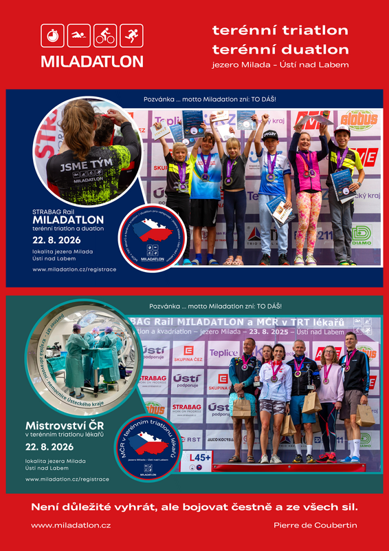 STRABAG Rail MILADATLON - terénní triatlon a duatlon pro širokou veřejnost včetně dětí a sluchově, zrakově a tělesně handicapovaných sportovců a zároveň Mistrovství ČR v terénním triatlonu lékařek a lékařů.
