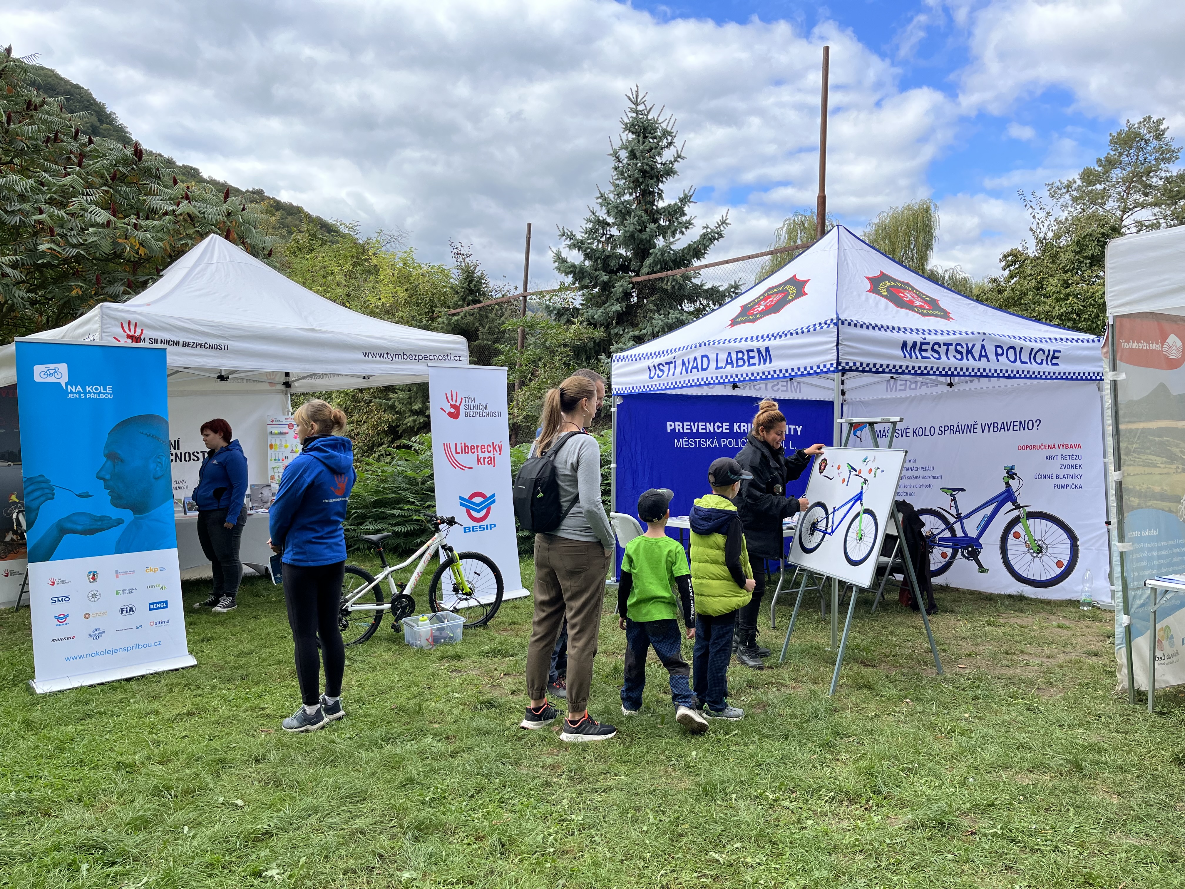 Všichni s optimismem vyplňovali cyklistický kvíz a doufali, že při jednom ze čtyř losování se na ně usměje štěstí. Vždyť ve hře byly dva piknikové koše a dva turistické batohy naplněné dalšími užitečnými dárky. Zájemci navštěvovali také prezentace destinace České středohoří, Týmu silniční bezpečnosti nebo Městské policie, aby načerpali tipy na výlety i důležité informace nezbytné pro bezpečnou jízdu na kole či koloběžce.