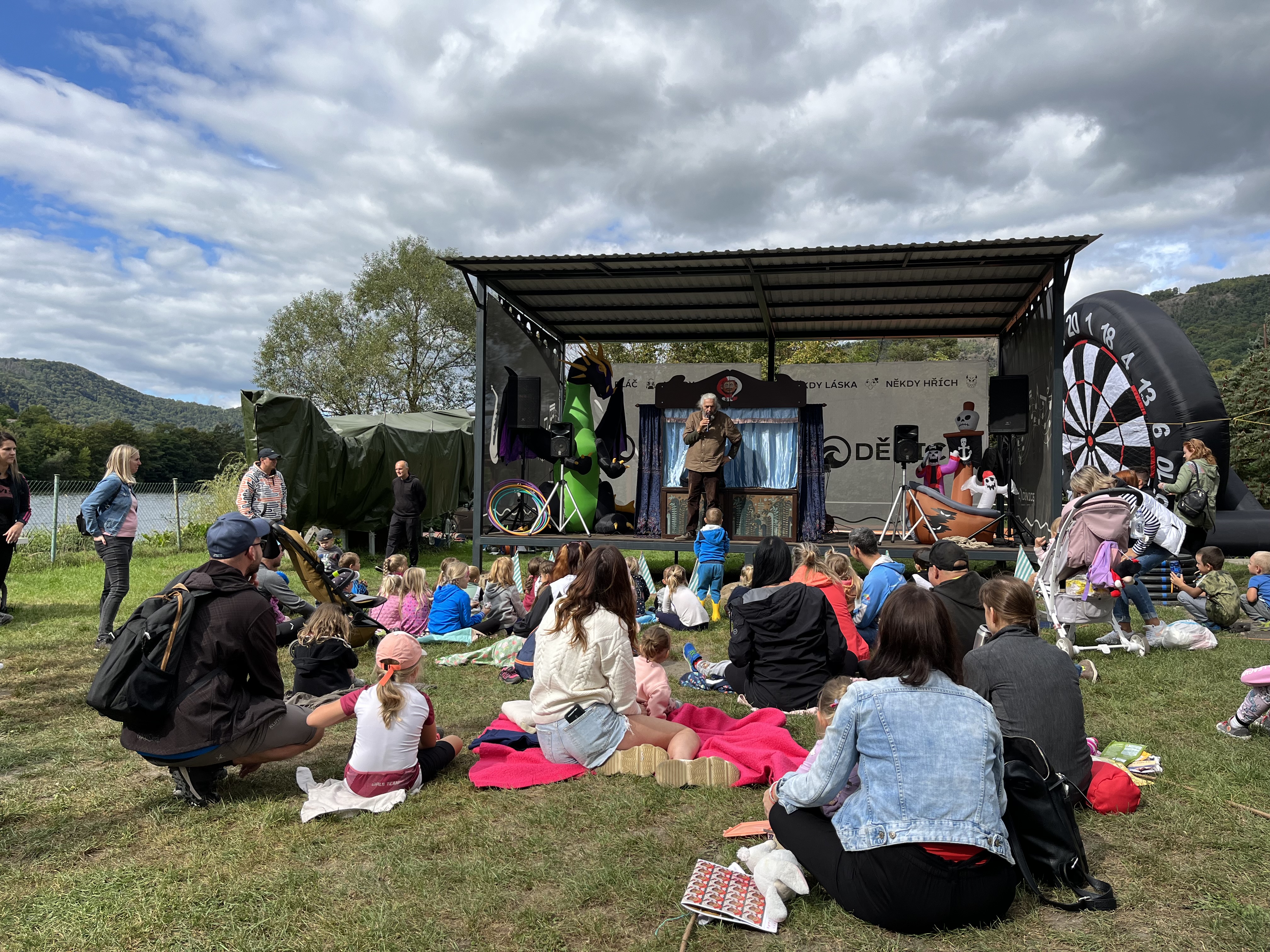 Cyklojízda, která startovala v Libochovanech, byla v cyklokempu přivítána moderátorem i hudebním doprovodem. Zde se již od dopoledních hodin bavili malí i velcí návštěvníci. Děti vyzkoušely skákací hrad, malování na obličej, lukostřelbu nebo třeba házení míče na koš. Společně s rodiči pak otestovali svou šikovnost na obřím fotbalovém terči. Úsměv na tváři všem přítomným vykouzlilo Sváťovo dividlo se svou pohádkou nebo diskotéka s Mickey Mousem a Minnie.