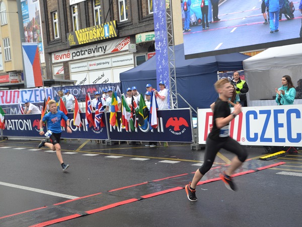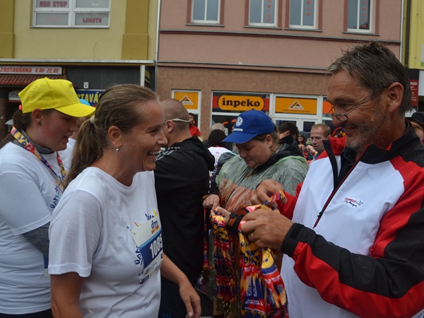 Zasloužená medaile v cíli hlavního závodu od primátorky města Věry Nechybové.