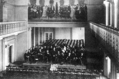 sál s maximální kapacitou 600 posluchačů. Nad jevištěm byl vyzdoben