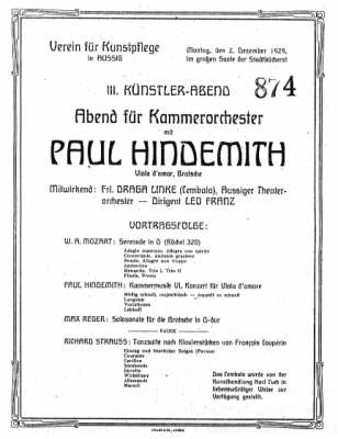 violu Paula Hindemitha v prosinci 1929. Leo Franz, v Ústí uznávaný