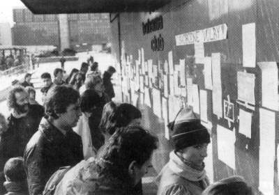 vylepené letáky s provoláním o ustavení Občanského fóra, výzvou