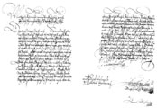 zápisu z 1. městské pamětní knihy. M. Hanse Kriesche Kronik der