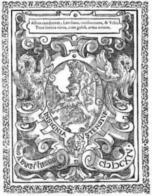 Erbovní znamení jsou doprovázena heslem a na protější straně otištěnou